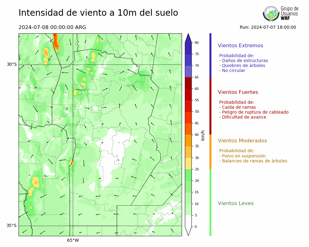 • Intensidad máxima: 15.62 km/h (08/07/2024 06hs.)