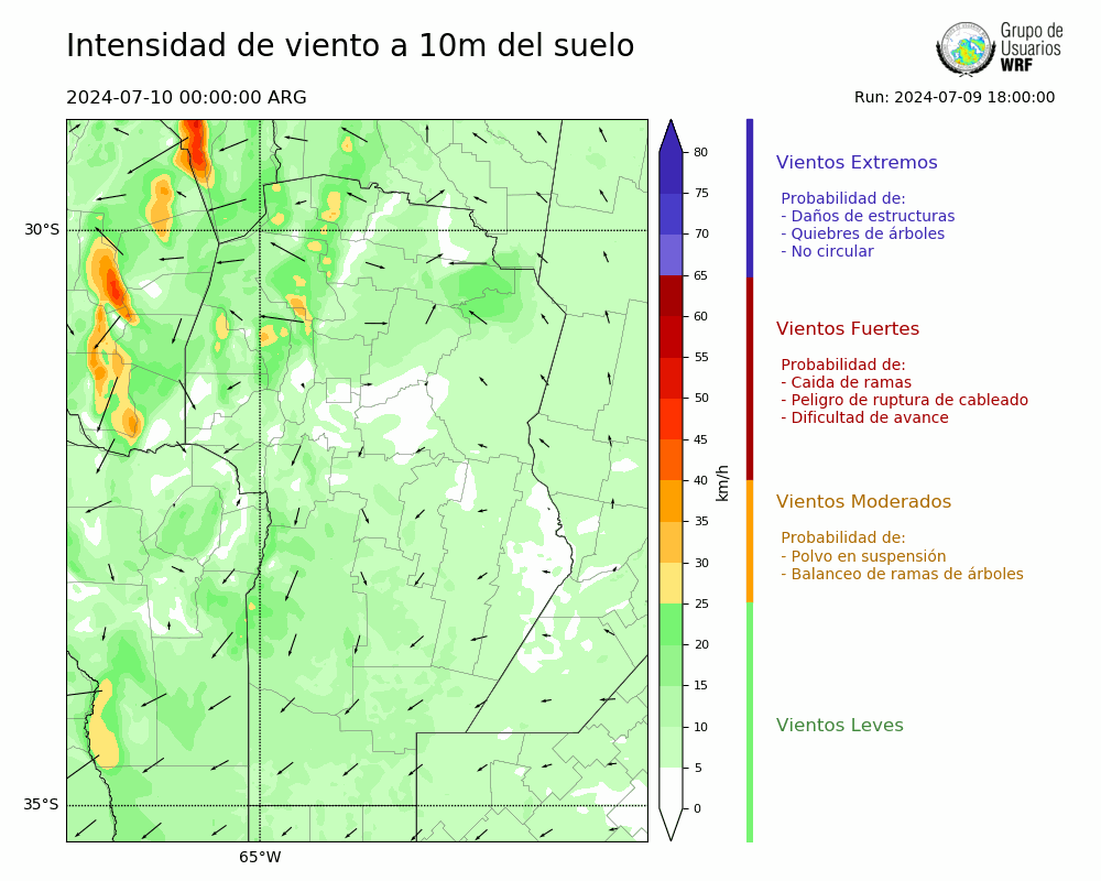 • Intensidad máxima: 14.77 km/h (10/07/2024 05hs.)