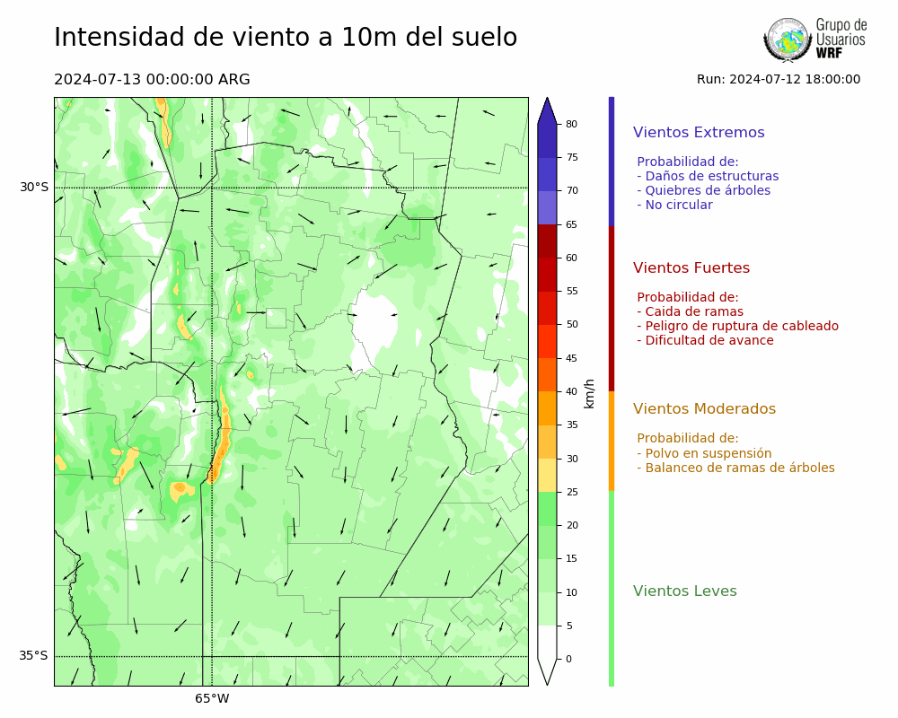 • Intensidad máxima: 9.65 km/h (13/07/2024 11hs.)