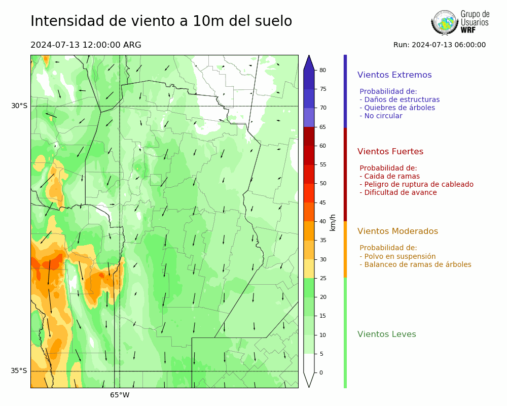 • Intensidad máxima: 20.09 km/h (15/07/2024 05hs.)