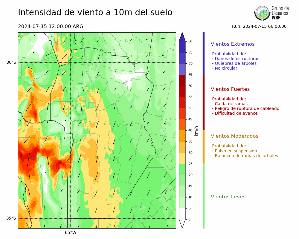 • Intensidad máxima: 30.85 km/h (15/07/2024 17hs.)