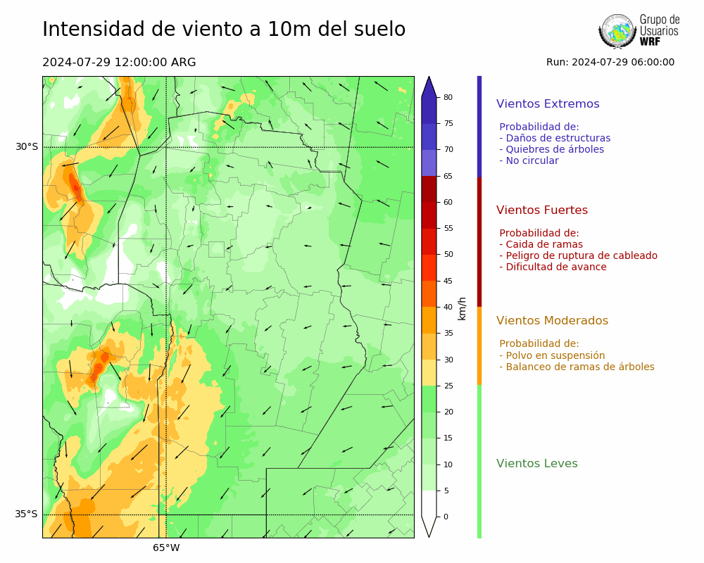 • Intensidad máxima: 25.82 km/h (29/07/2024 18hs.)