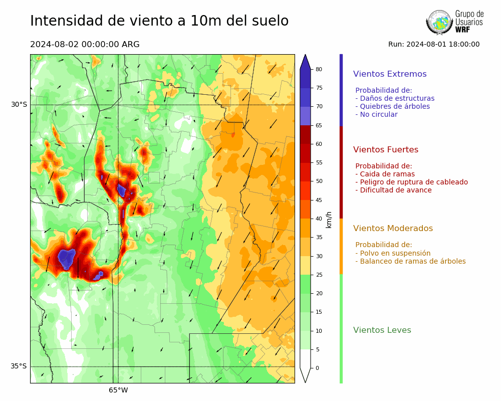 • Intensidad máxima: 45.31 km/h (02/08/2024 04hs.)