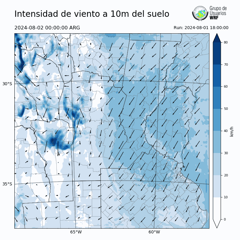 • Intensidad máxima: 32.58 km/h (02/08/2024 00hs.)