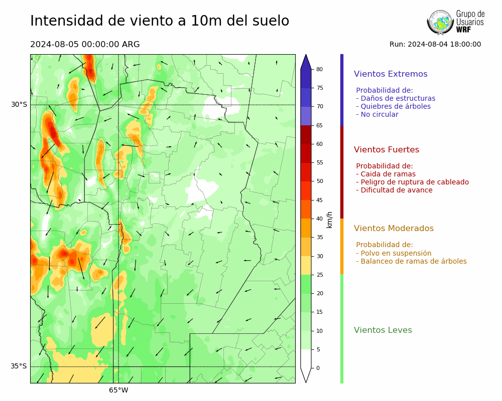 • Intensidad máxima: 19.10 km/h (05/08/2024 11hs.)
