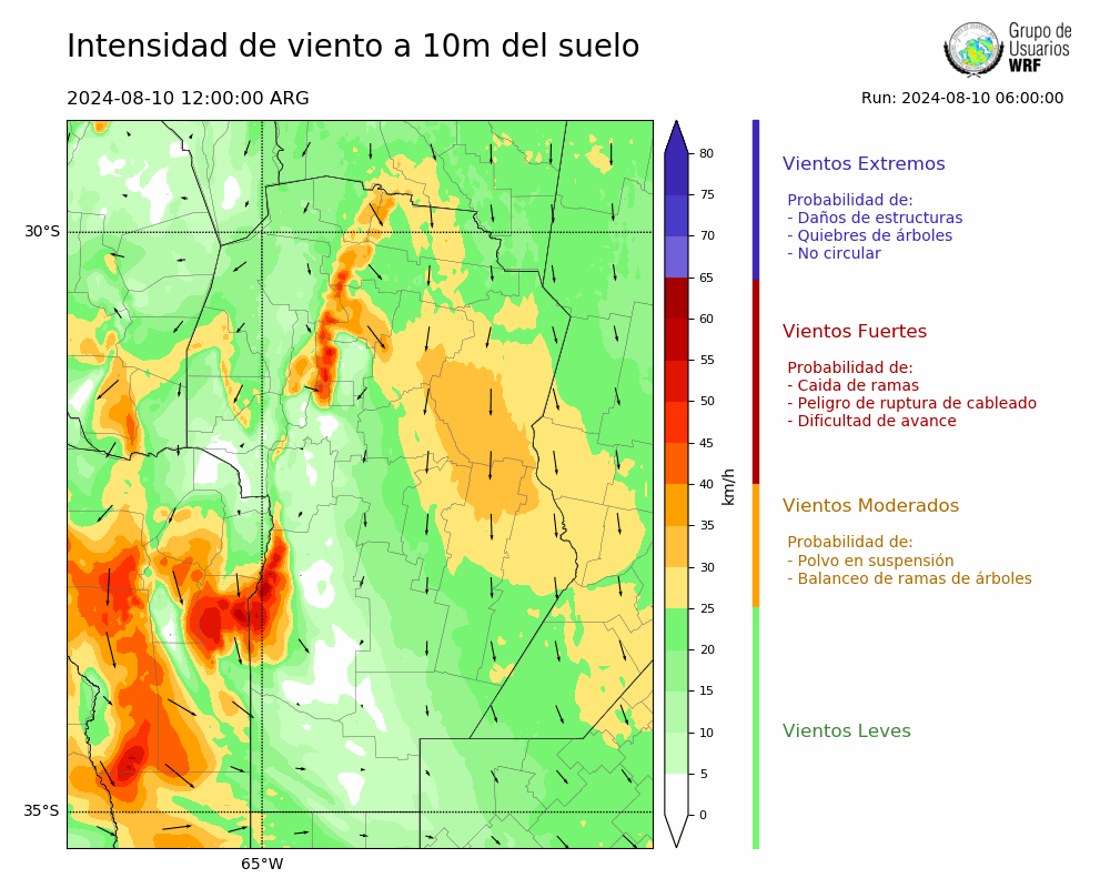 • Intensidad máxima: 20.16 km/h (12/08/2024 20hs.)