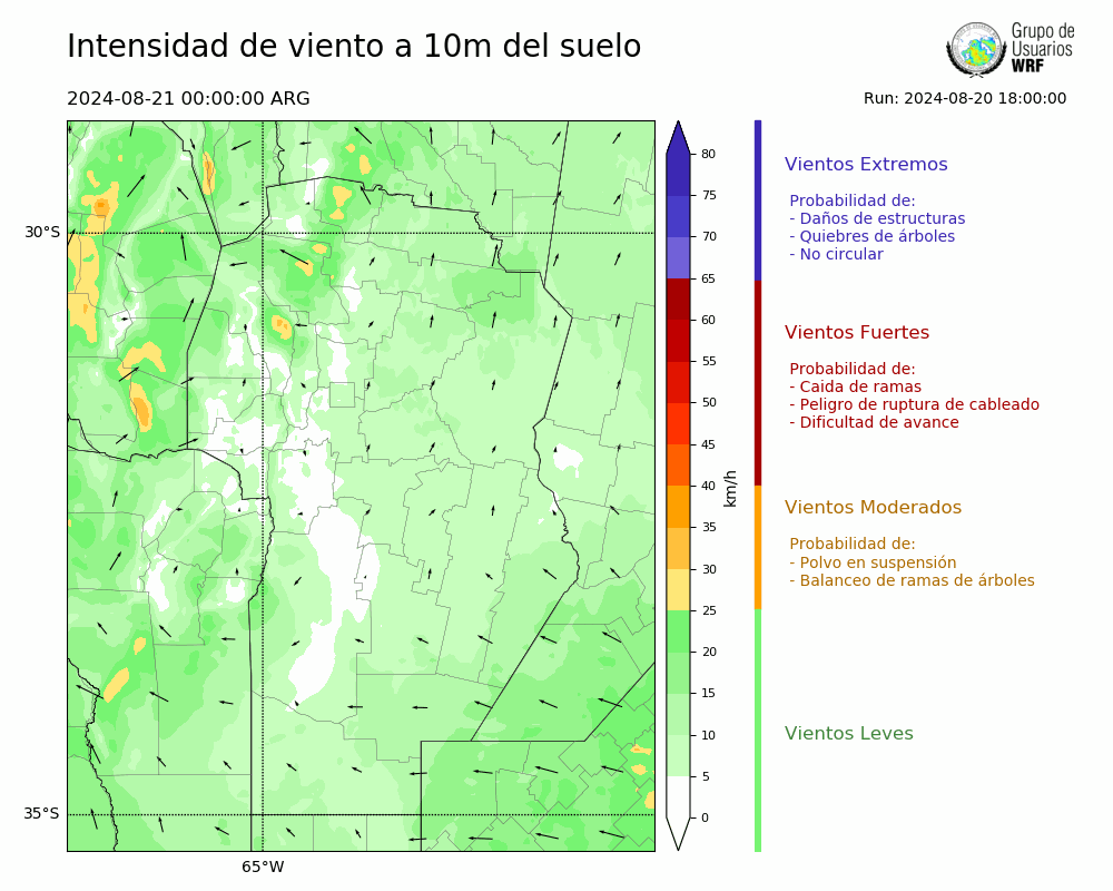 • Intensidad máxima: 19.22 km/h (21/08/2024 08hs.)