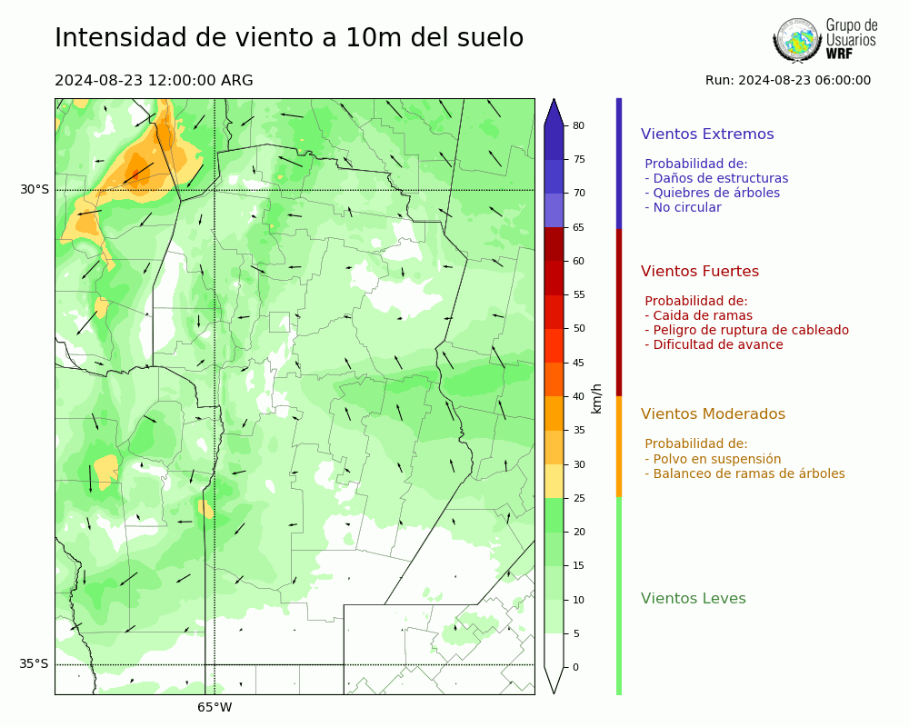 • Intensidad máxima: 19.50 km/h (23/08/2024 16hs.)
