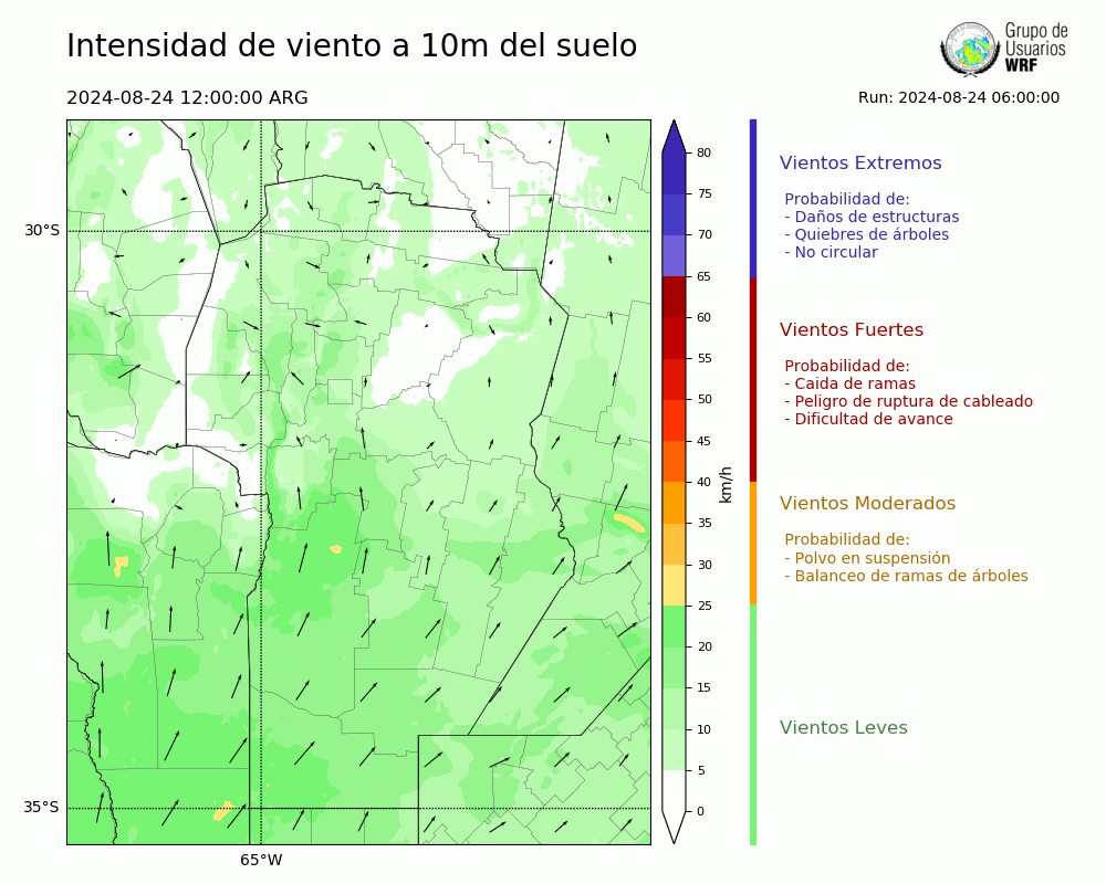 • Intensidad máxima: 19.27 km/h (24/08/2024 12hs.)