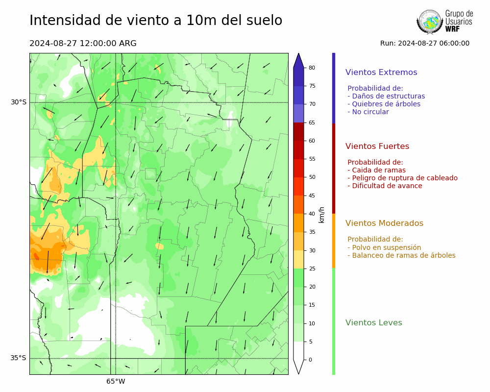 • Intensidad máxima: 27.25 km/h (27/08/2024 14hs.)
