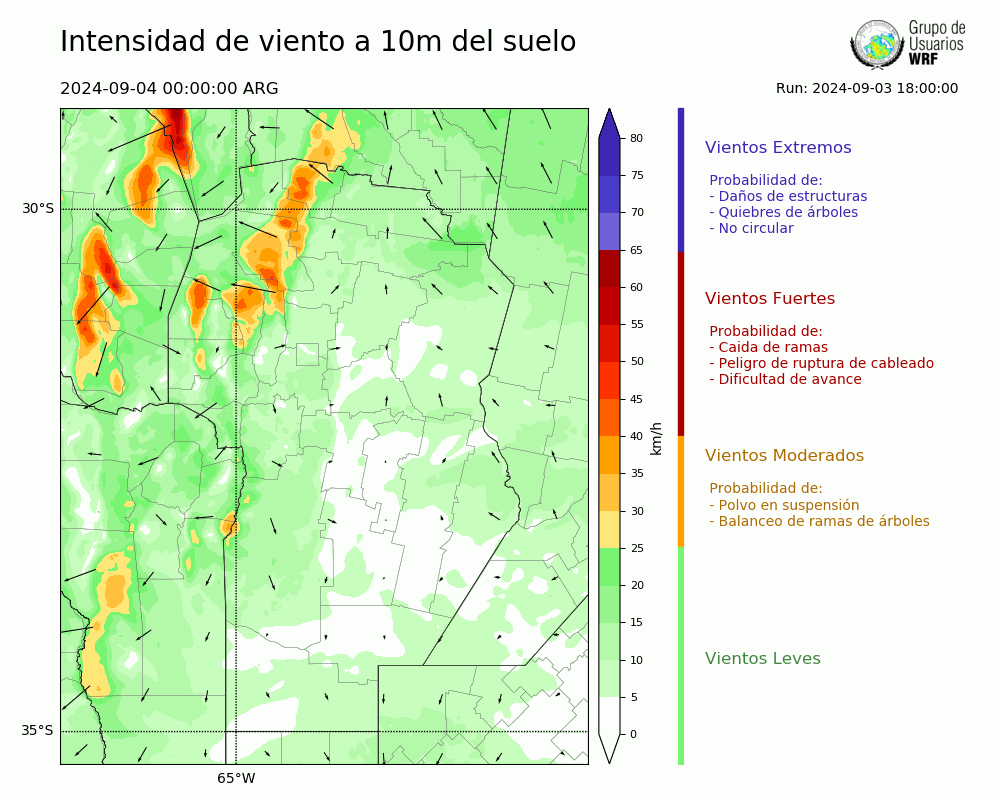 • Intensidad máxima: 12.64 km/h (04/09/2024 11hs.)