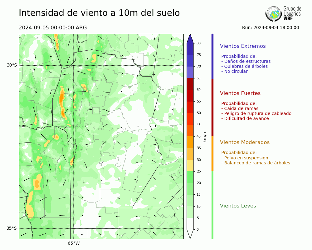 • Intensidad máxima: 35.90 km/h (05/09/2024 17hs.)