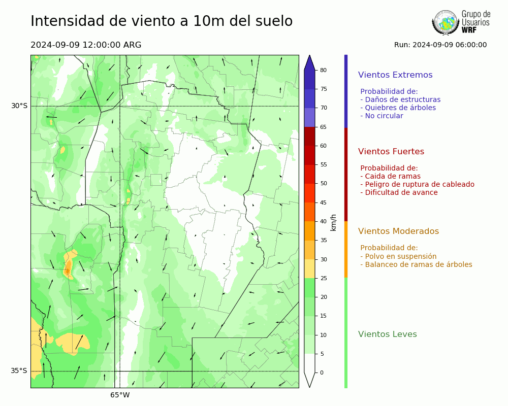 • Intensidad máxima: 18.36 km/h (09/09/2024 23hs.)