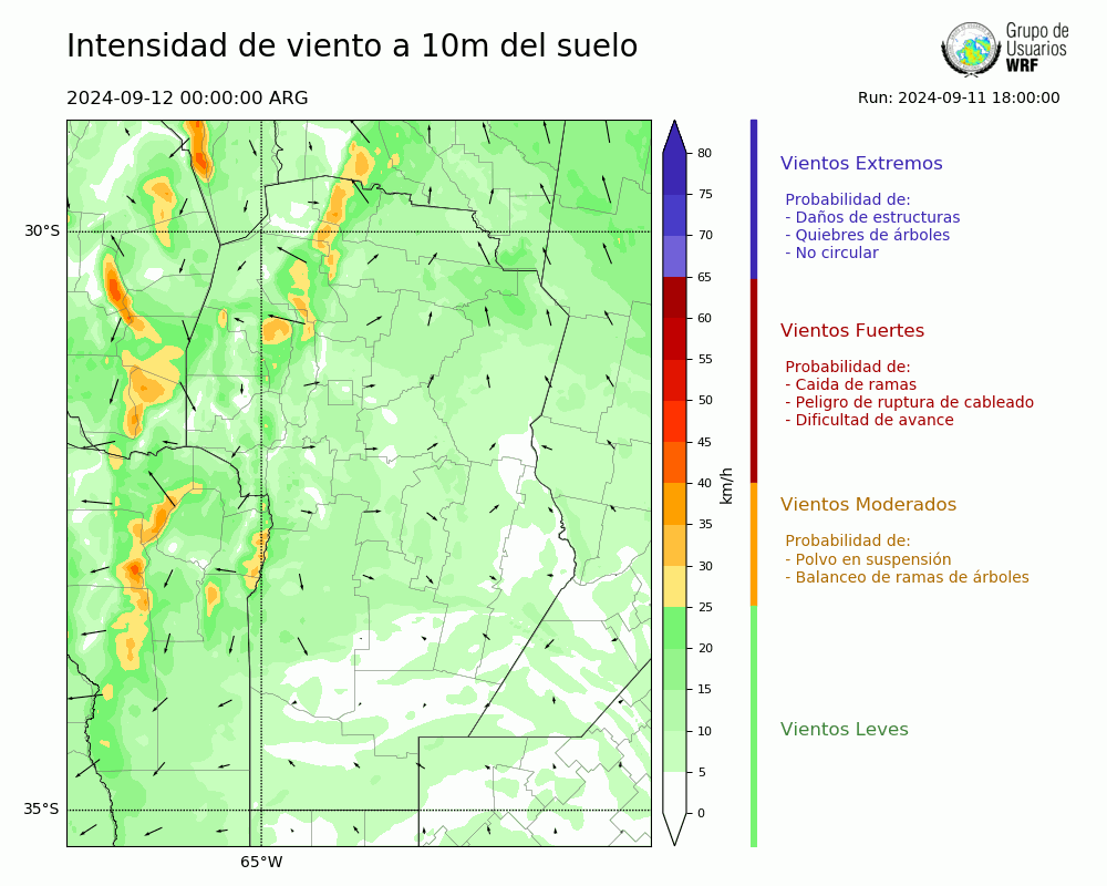 • Intensidad máxima: 13.39 km/h (12/09/2024 11hs.)