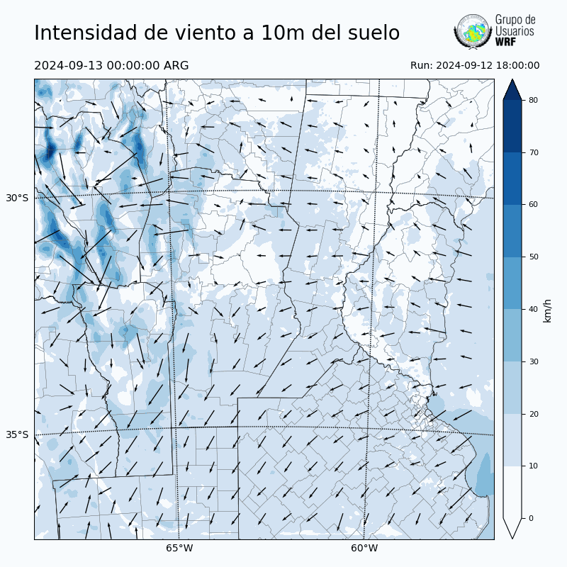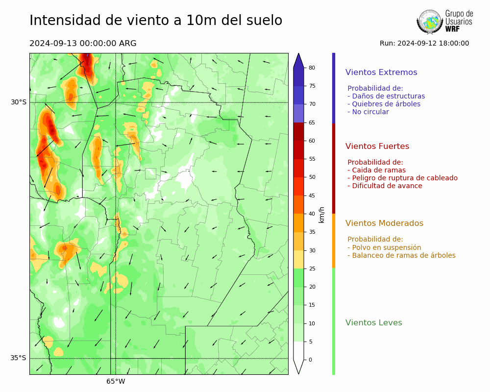 • Intensidad máxima: 10.00 km/h (13/09/2024 09hs.)