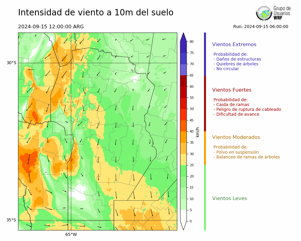 • Intensidad máxima: 27.45 km/h (15/09/2024 16hs.)