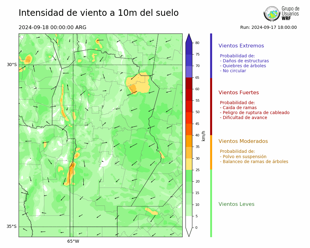 • Intensidad máxima: 26.28 km/h (18/09/2024 04hs.)