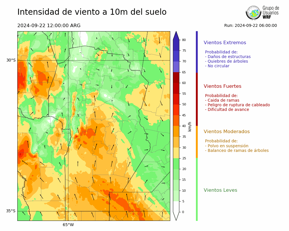 • Intensidad máxima: 22.36 km/h (22/09/2024 13hs.)