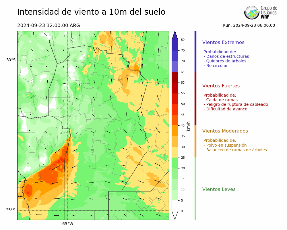 • Intensidad máxima: 22.63 km/h (23/09/2024 16hs.)