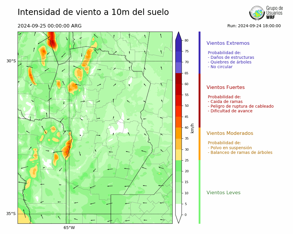 • Intensidad máxima: 16.37 km/h (25/09/2024 11hs.)