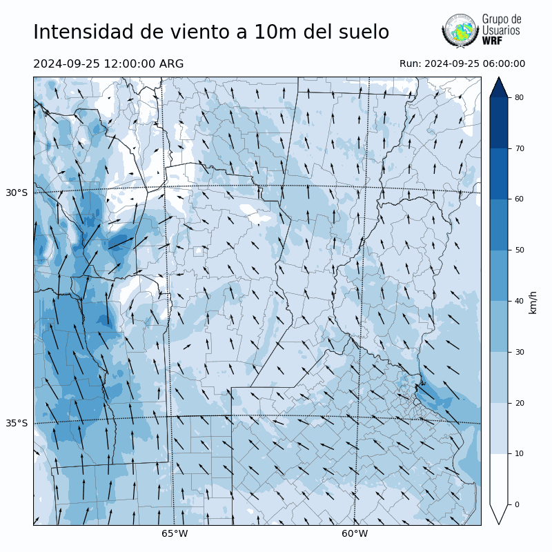 • Intensidad máxima: 3.15 km/h (26/09/2024 23hs.)