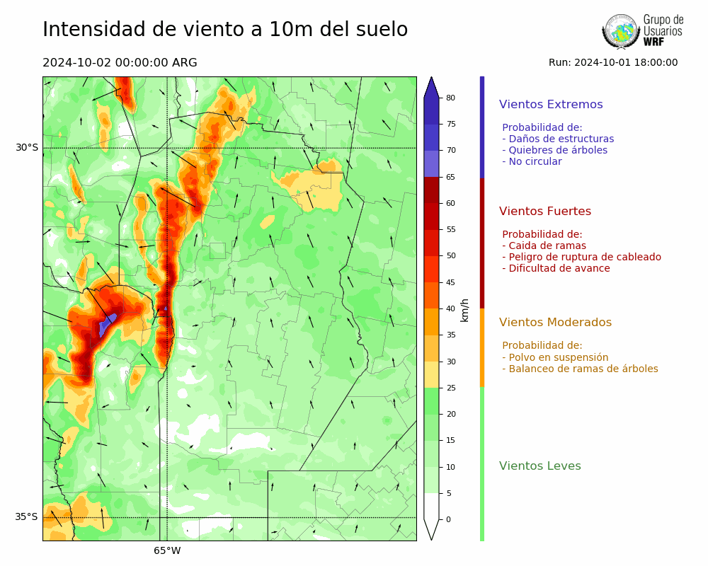 • Intensidad máxima: 33.98 km/h (03/10/2024 17hs.)