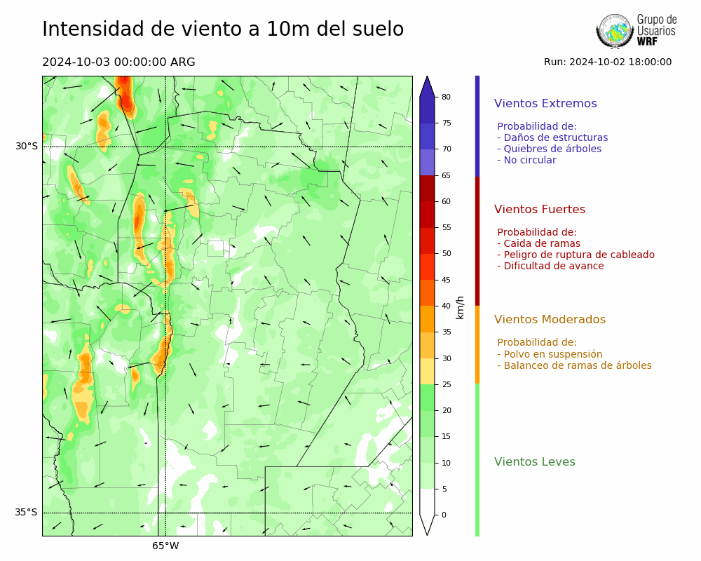 • Intensidad máxima: 10.20 km/h (04/10/2024 00hs.)