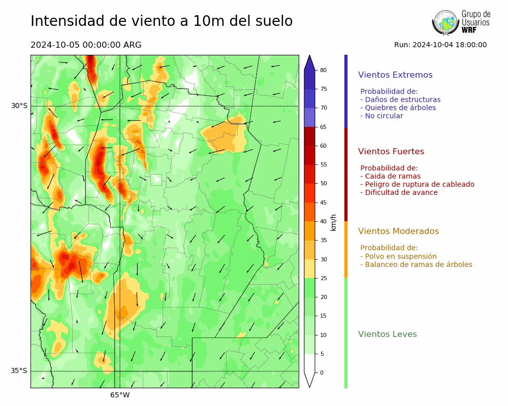 • Intensidad máxima: 27.05 km/h (05/10/2024 04hs.)