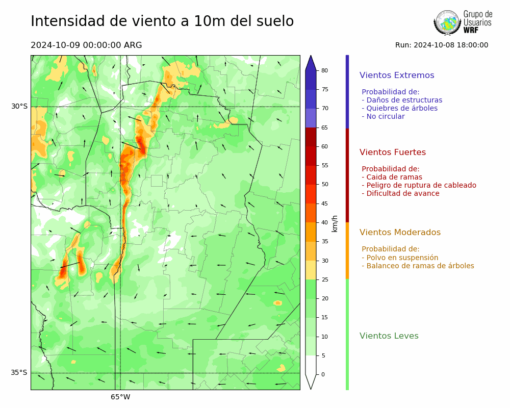 • Intensidad máxima: 10.82 km/h (09/10/2024 11hs.)