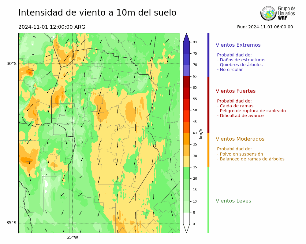 • Intensidad máxima: 18.94 km/h (01/11/2024 21hs.)