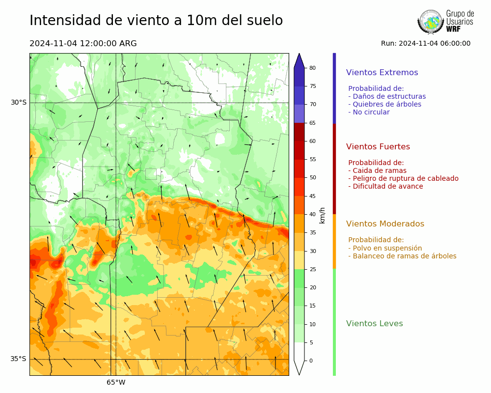 • Intensidad máxima: 20.17 km/h (06/11/2024 09hs.)