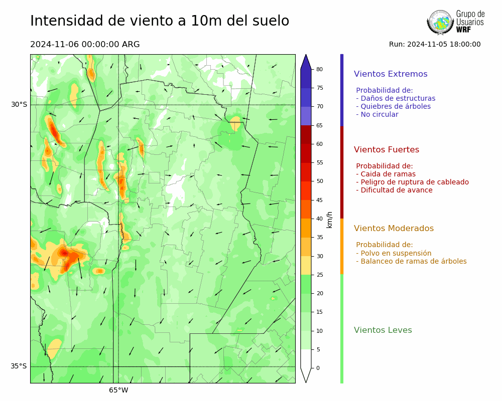 • Intensidad máxima: 7.56 km/h (08/11/2024 06hs.)