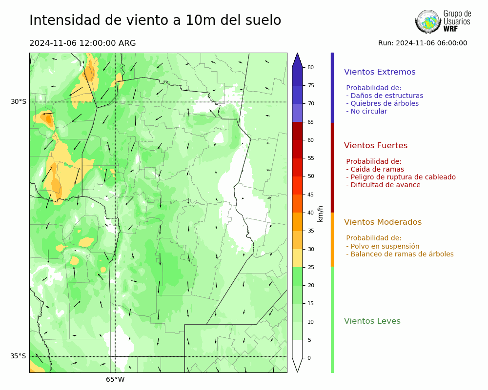 • Intensidad máxima: 22.94 km/h (06/11/2024 12hs.)