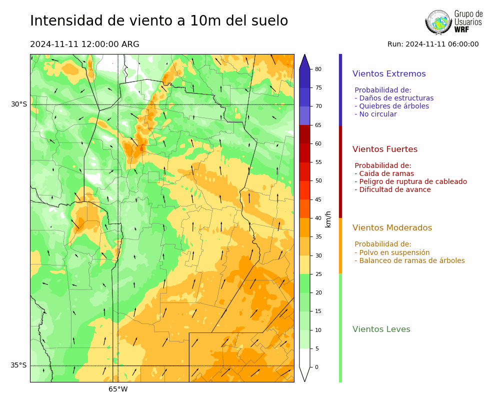 • Intensidad máxima: 14.72 km/h (12/11/2024 11hs.)