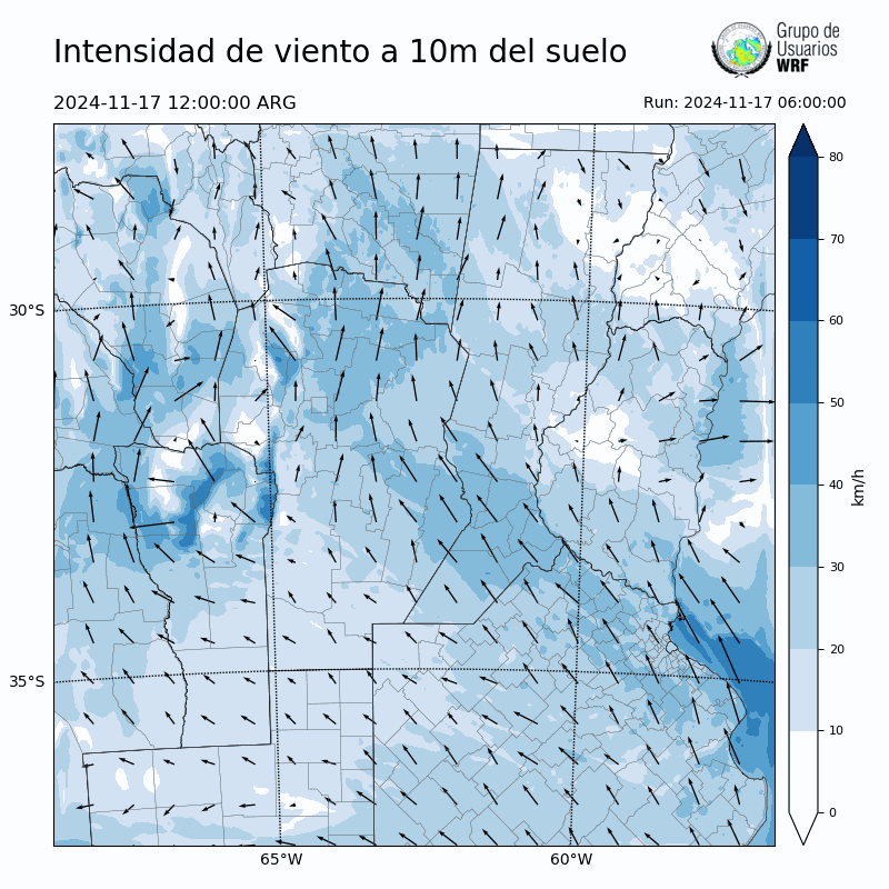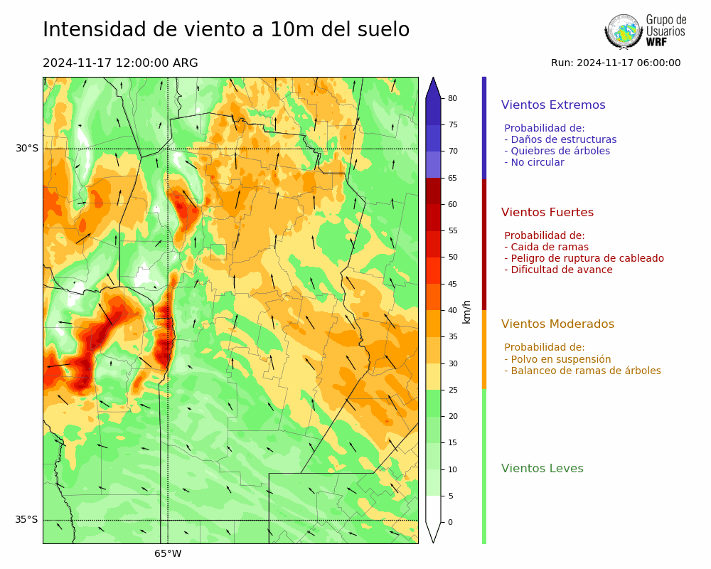 • Intensidad máxima: 5.00 km/h (19/11/2024 09hs.)