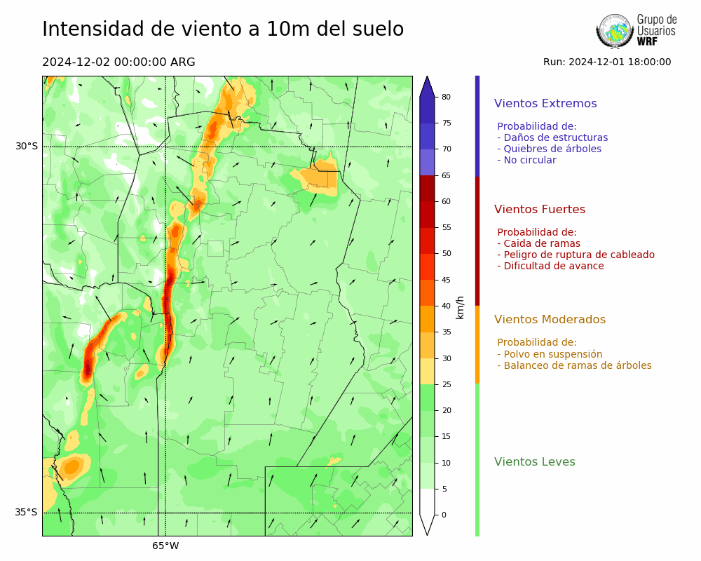 • Intensidad máxima: 21.76 km/h (02/12/2024 03hs.)