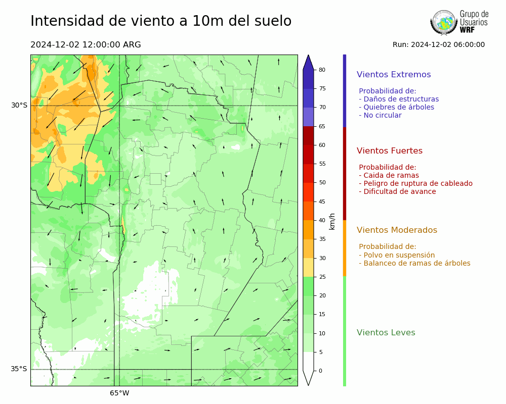 • Intensidad máxima: 17.34 km/h (02/12/2024 16hs.)