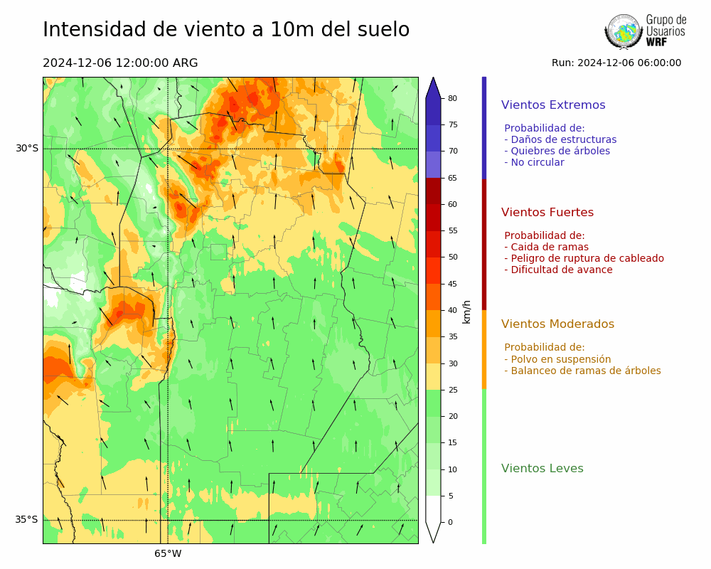 • Intensidad máxima: 19.27 km/h (06/12/2024 17hs.)
