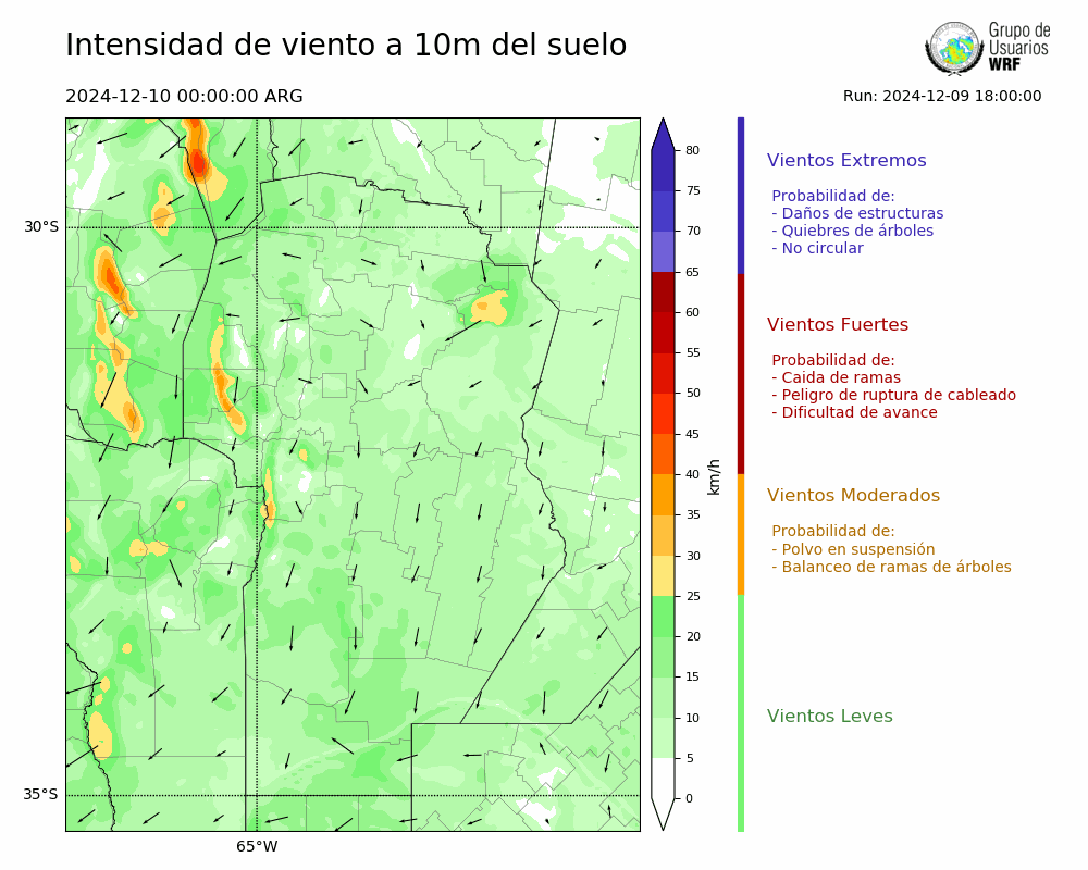 • Intensidad máxima: 12.68 km/h (10/12/2024 11hs.)