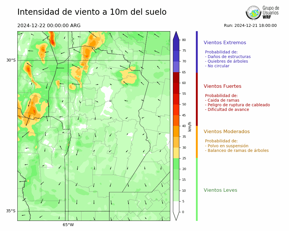 • Intensidad máxima: 14.07 km/h (22/12/2024 10hs.)