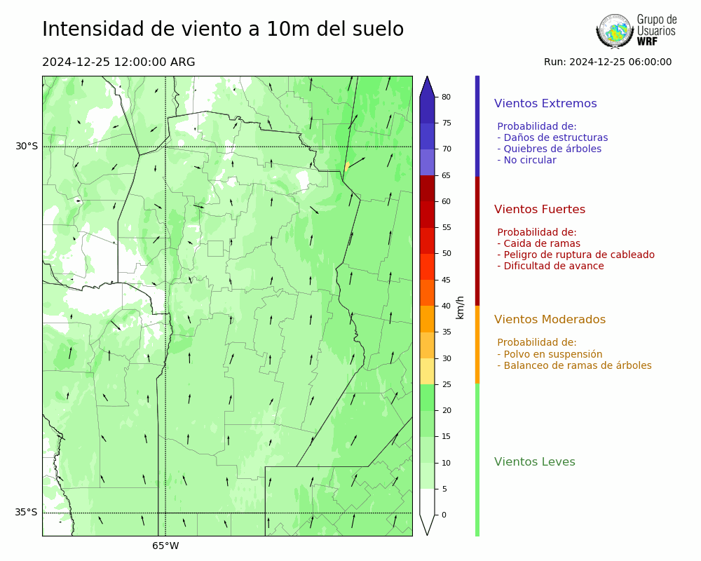 • Intensidad máxima: 13.84 km/h (25/12/2024 17hs.)