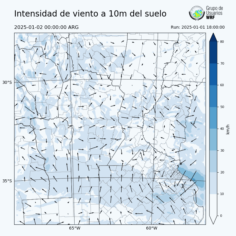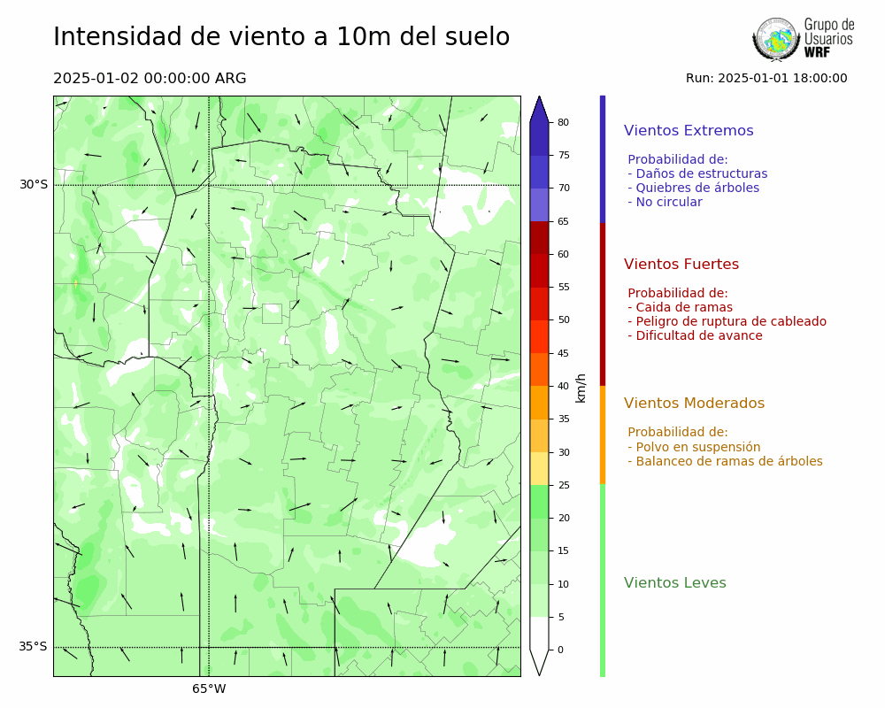 • Intensidad máxima: 15.96 km/h (02/01/2025 08hs.)