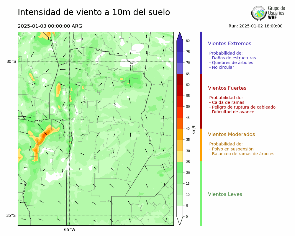 • Intensidad máxima: 9.16 km/h (03/01/2025 01hs.)
