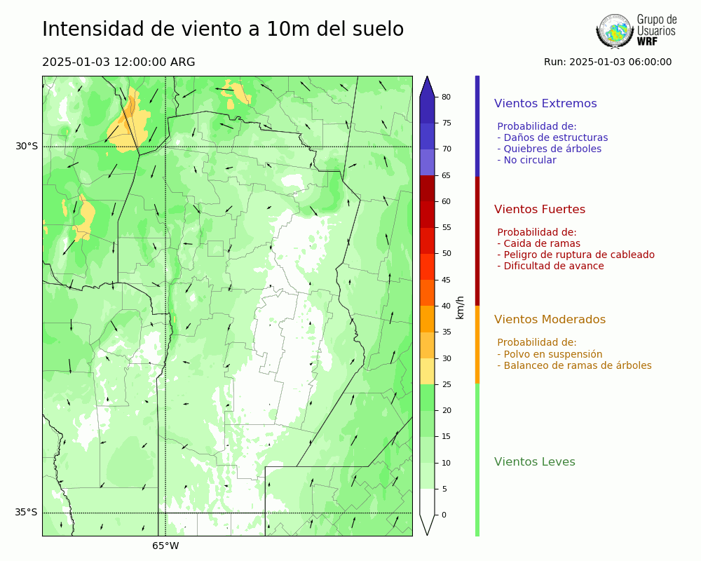 • Intensidad máxima: 19.72 km/h (05/01/2025 05hs.)