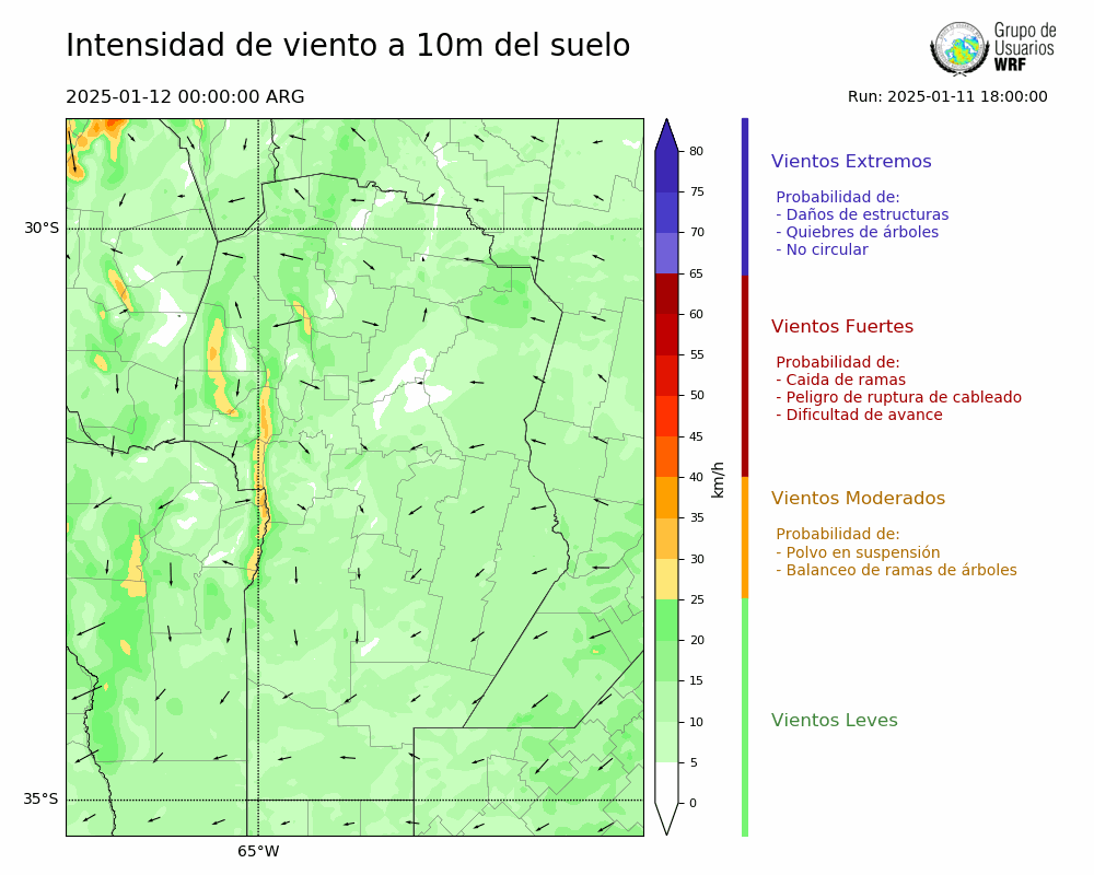 • Intensidad máxima: 6.71 km/h (12/01/2025 06hs.)