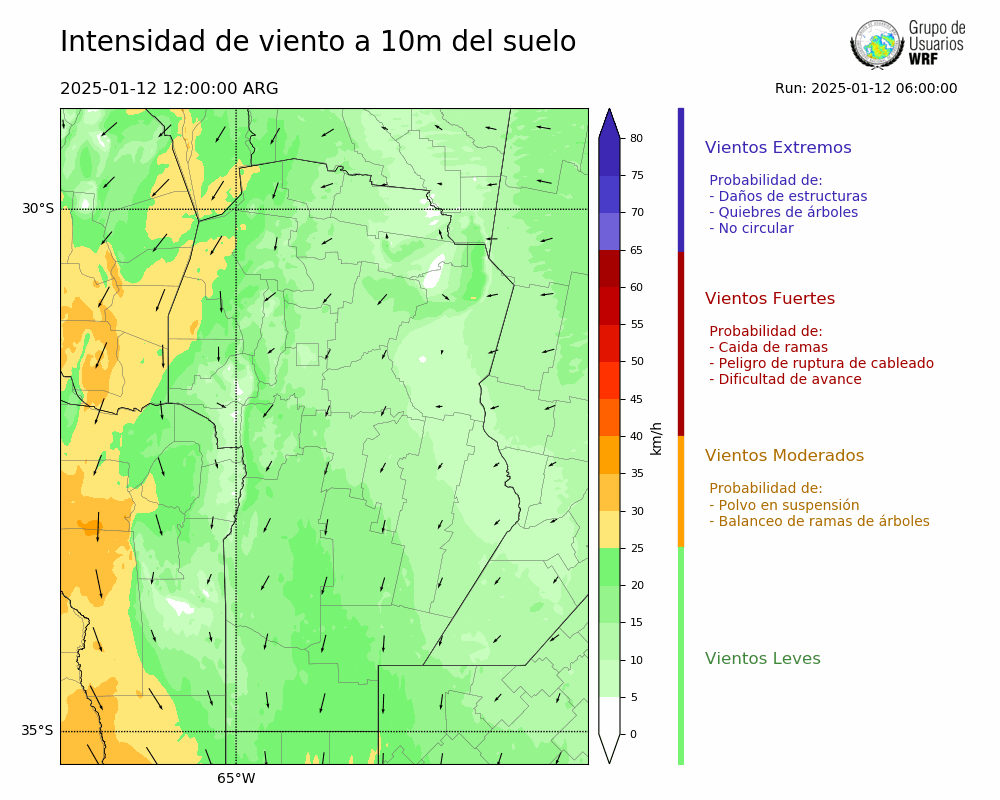 • Intensidad máxima: 19.63 km/h (12/01/2025 19hs.)