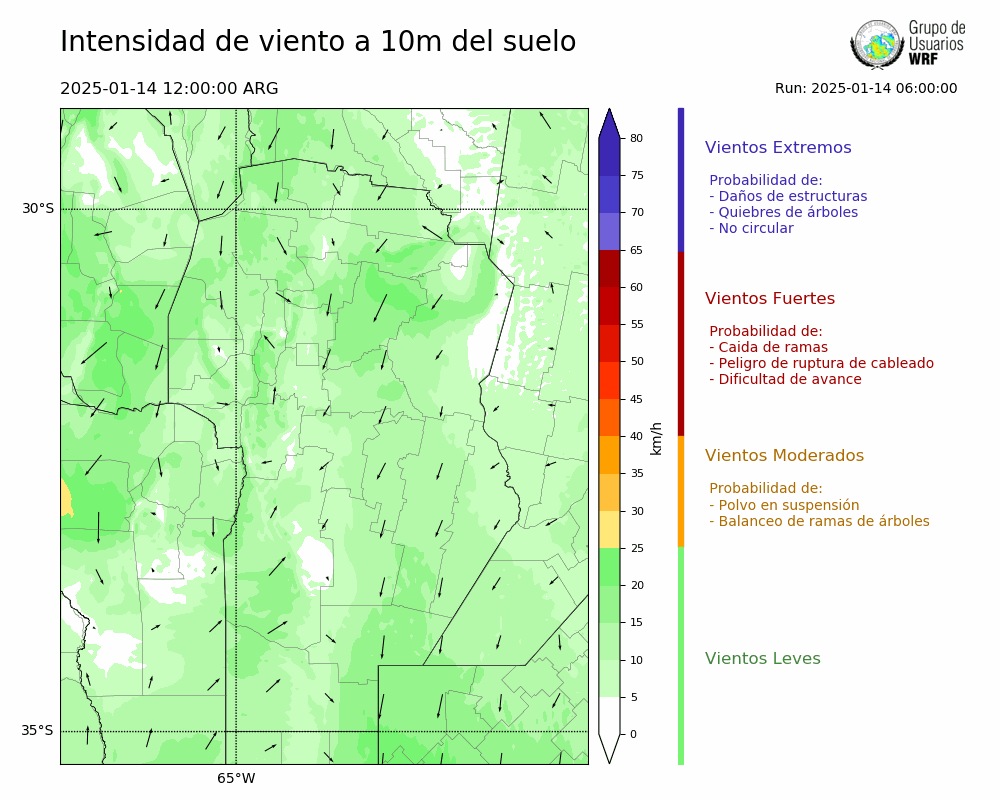 • Intensidad máxima: 6.10 km/h (15/01/2025 07hs.)