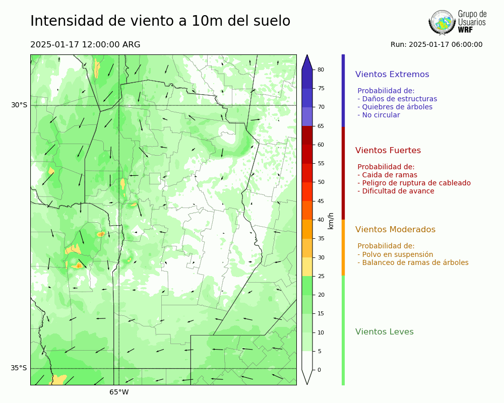 • Intensidad máxima: 28.01 km/h (17/01/2025 14hs.)