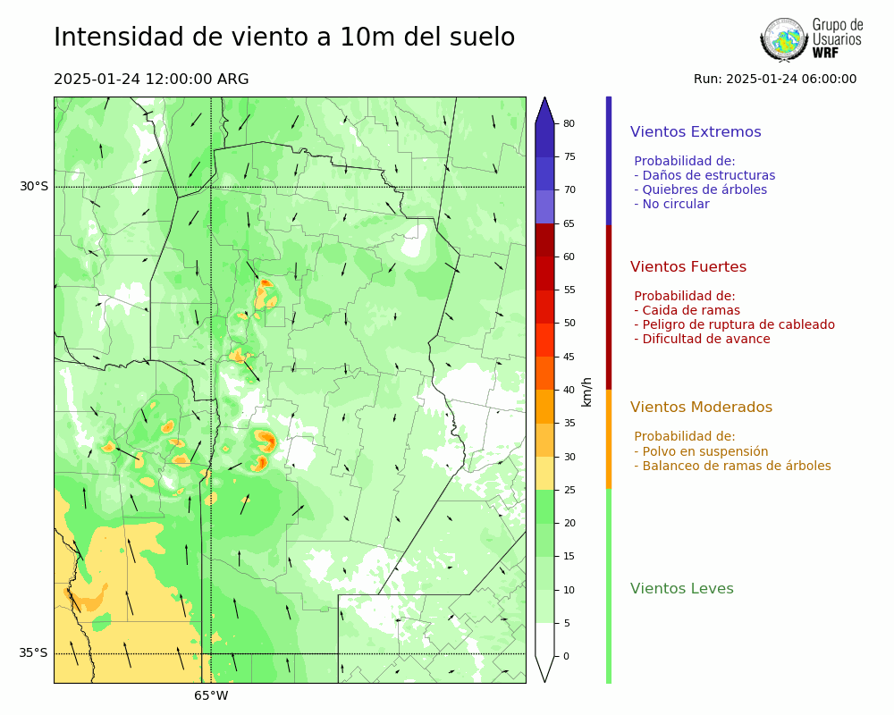 • Intensidad máxima: 43.06 km/h (24/01/2025 16hs.)