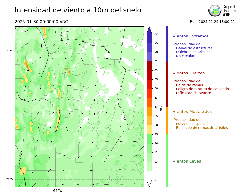 • Intensidad máxima: 18.89 km/h (30/01/2025 10hs.)